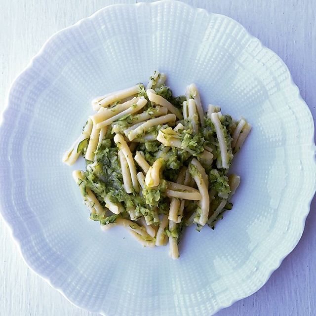 Cuocere in padella a fuoco medio per 10 minuti e salare -versare la pasta nel condimento di zucchine e lasciar insaporire in padella .